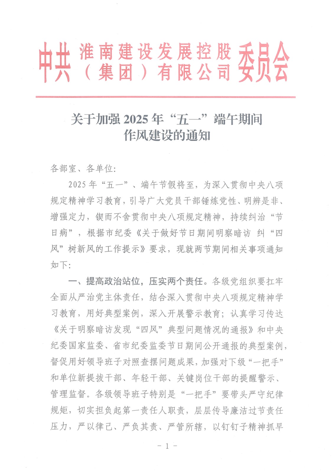 關(guān)于加強2025年“五一”端午期間 作風建設的通知